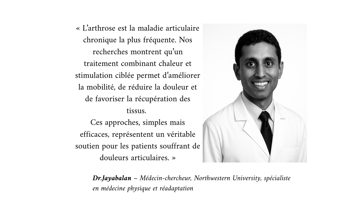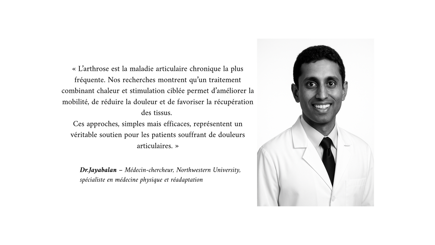 Retrouvez la liberté de bouger sans douleur. Une chaleur douce et un massage personnalisé pour soigner vos genoux, jour après jour.